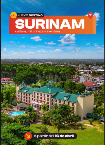 La información fue compartida por la propia línea aérea a través de una publicación promocional en la que destaca a Surinam como una propuesta de viaje enfocada en cultura, naturaleza y aventura, con inicio de operaciones a partir del 16 de abril.